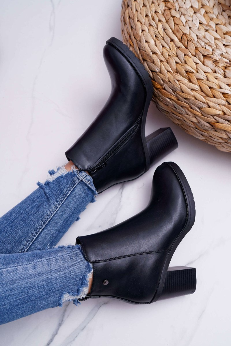 Botki Damskie Na Obcasie Czarne Serrena