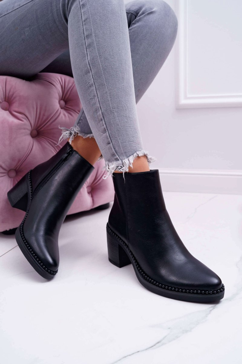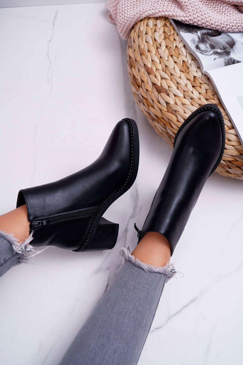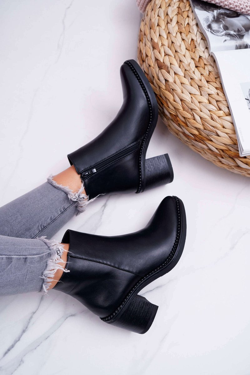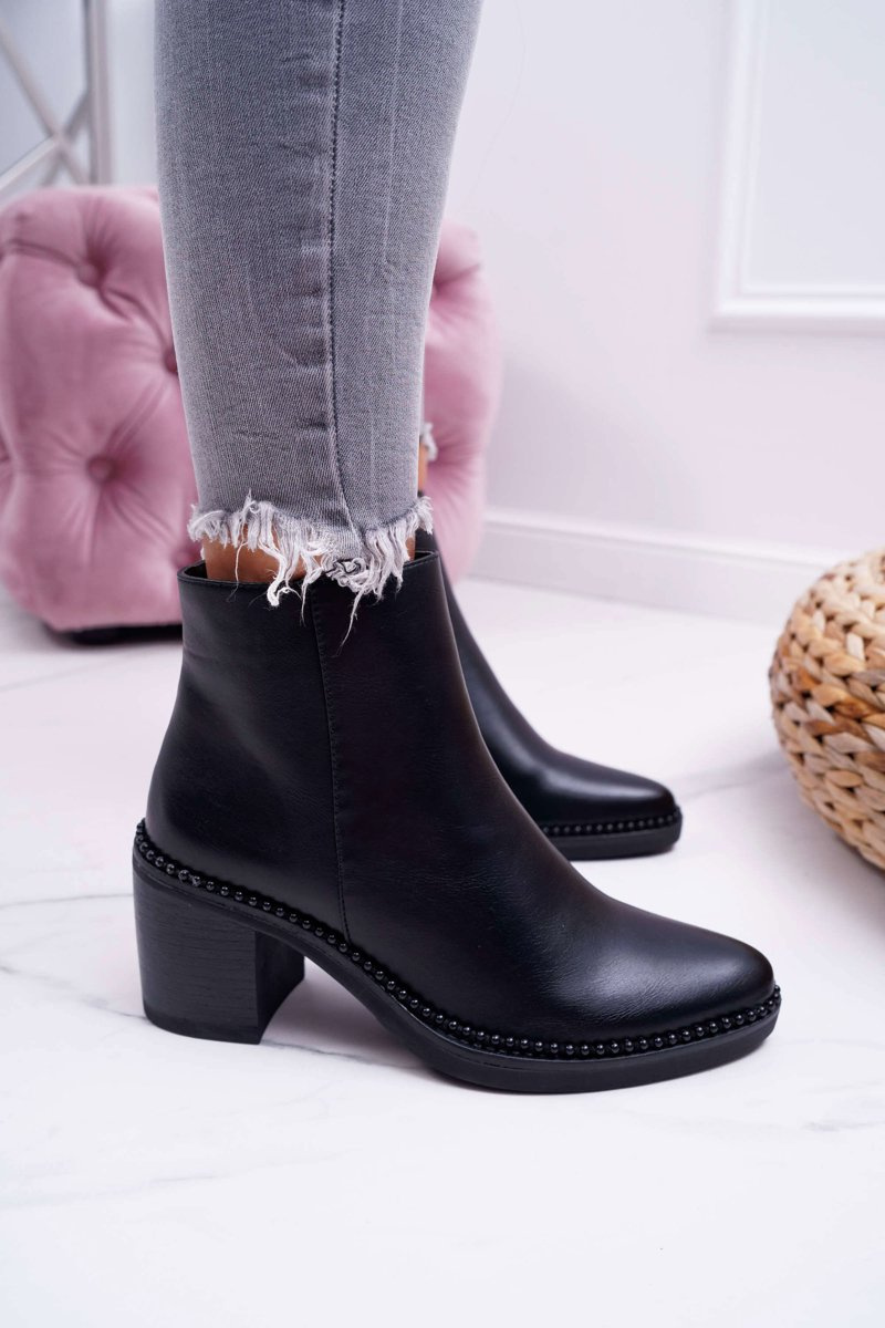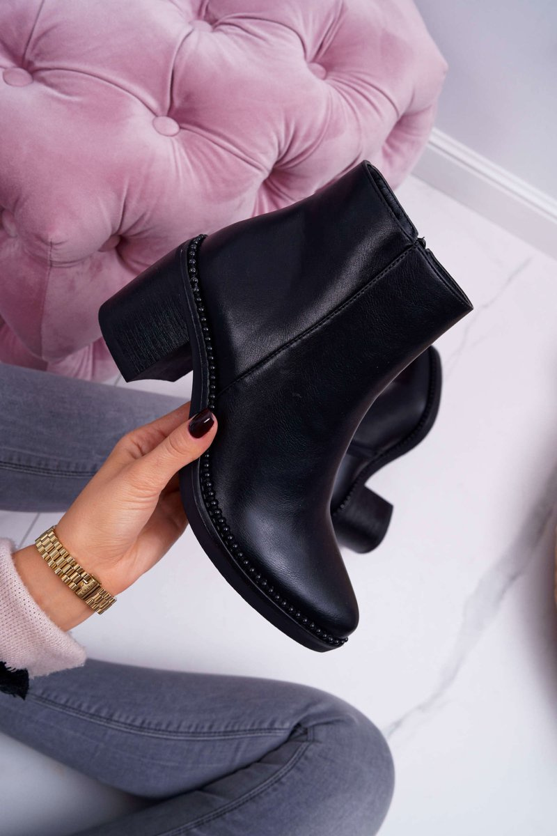 Niezwykle wygodne i modne botki, wykonane ze skóry ekologicznej. Klasyczny wzór na niskim słupku z suwakiem na boku ułatwiającym zakładanie. Zdobienie wokół podeszwy w postaci koralików. Wnętrze pokryte kocem obuwniczym z krótkim włosiem, które zapewni nam komfort w każdych warunkach. Przy wyborze rozmiaru prosimy sugerować się tabelą rozmiarów.