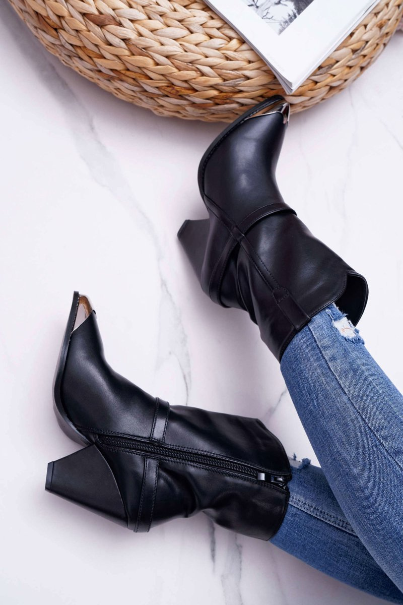 Botki Damskie Na Słupku Czarne Make Feel