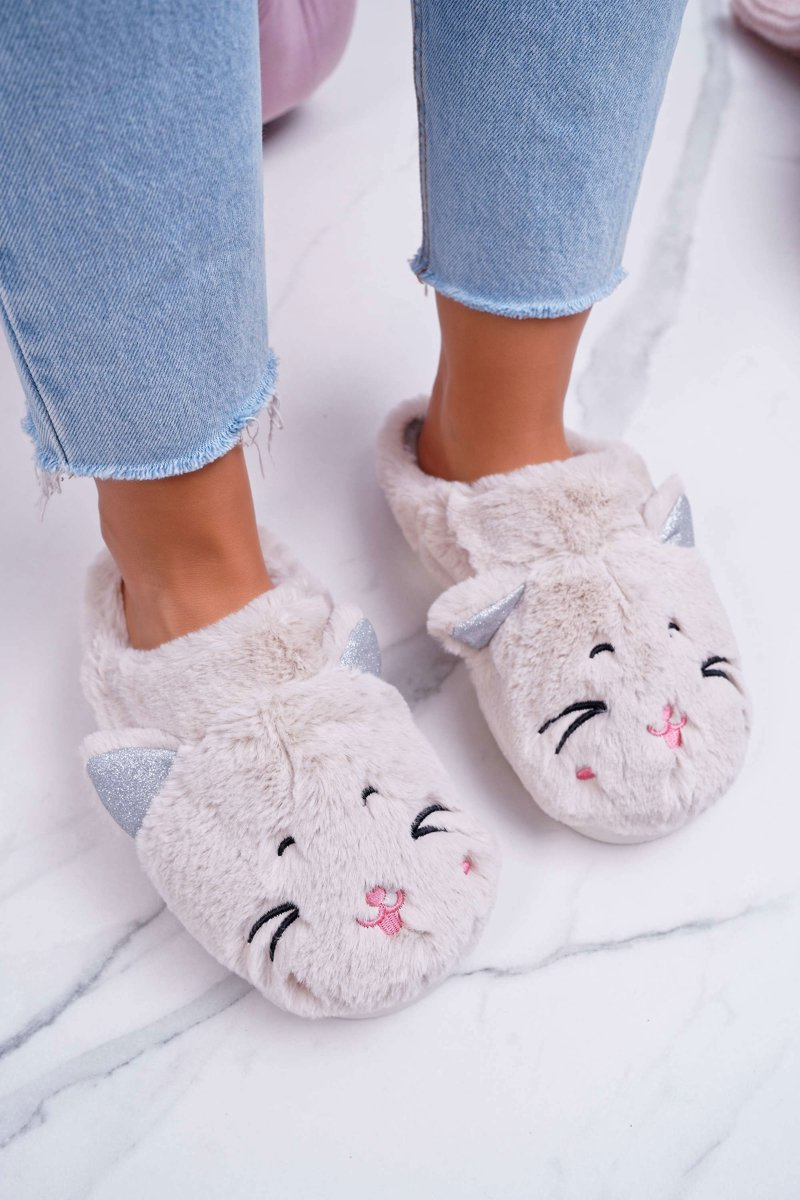 Kapcie Damskie Kotki z Uszami Białe Sleppyhead