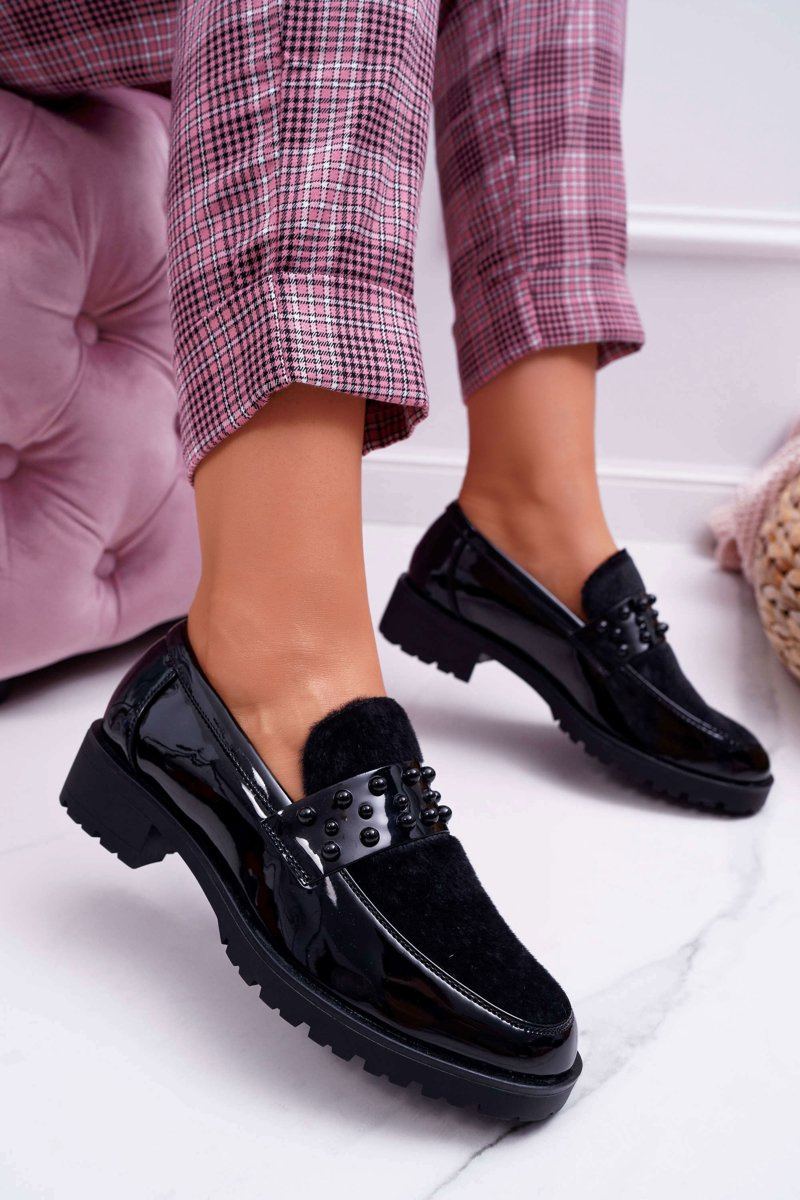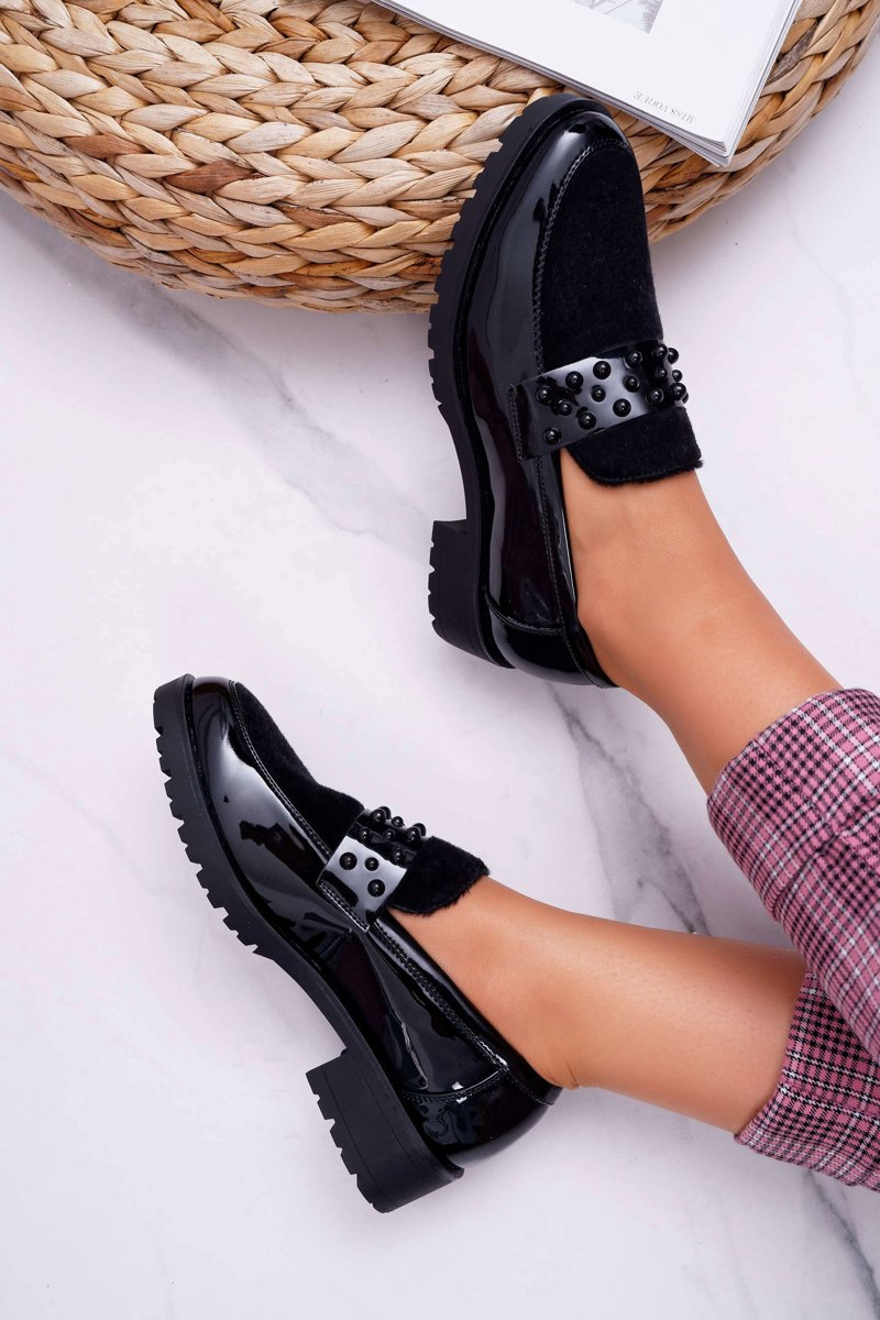 Damskie Półbuty Wsuwane Lakierowane Czarne Delicious
