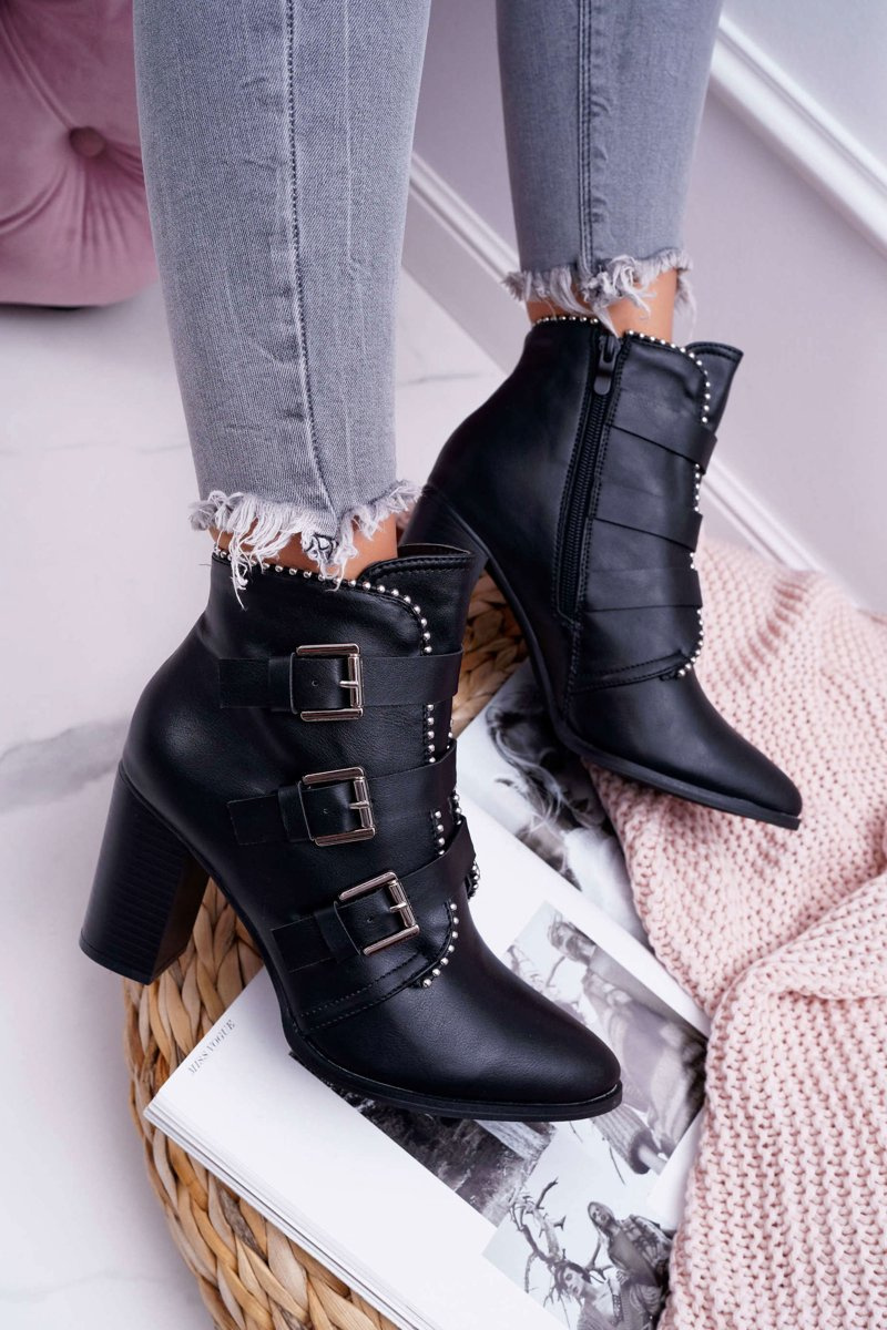 Botki Damskie Na Słupku Klamry Czarne Finbas