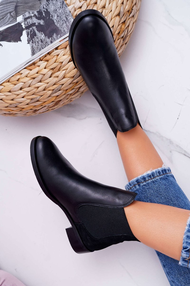Botki Damskie Skórzane Sztyblety Maciejka Czarne 04359