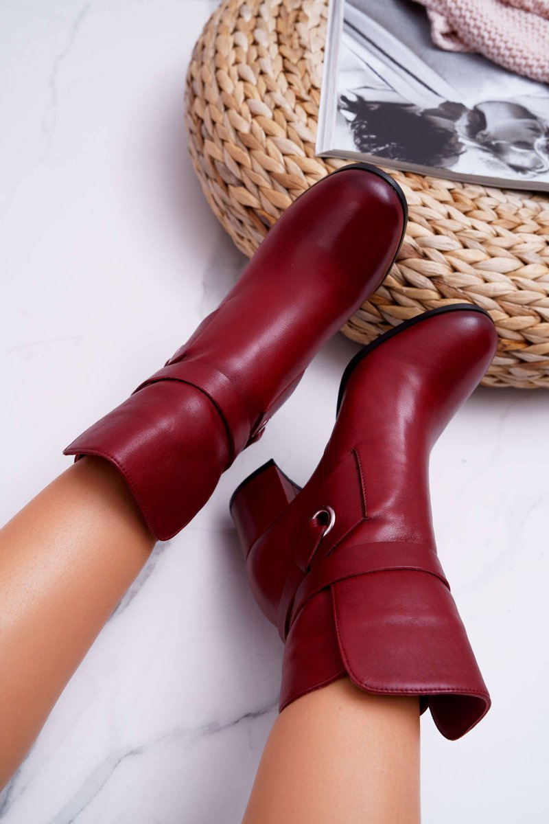 Botki Damskie Skórzane Wsuwane Bordowe 1820 Laura Messi