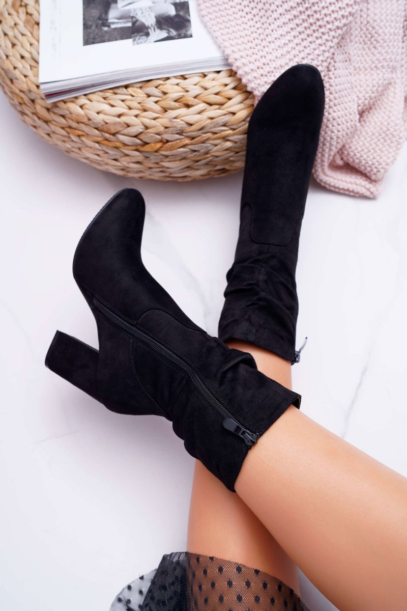 Botki Damskie Na Słupku Zamsz Czarne S.Barski 36-14