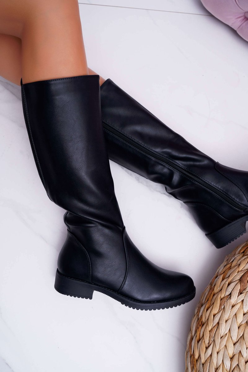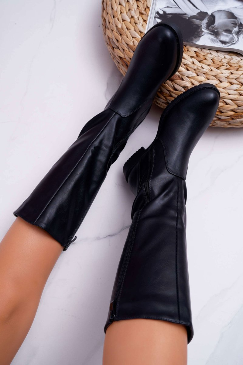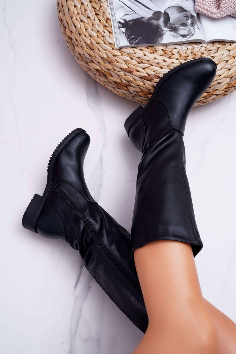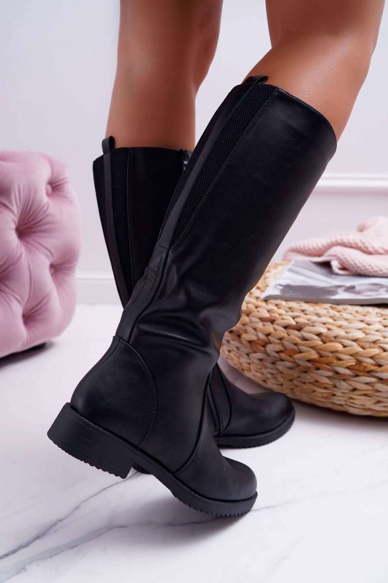 Kozaki Damskie Sergio Leone Z Gumką w Cholewce Ocieplane Czarne KZ528