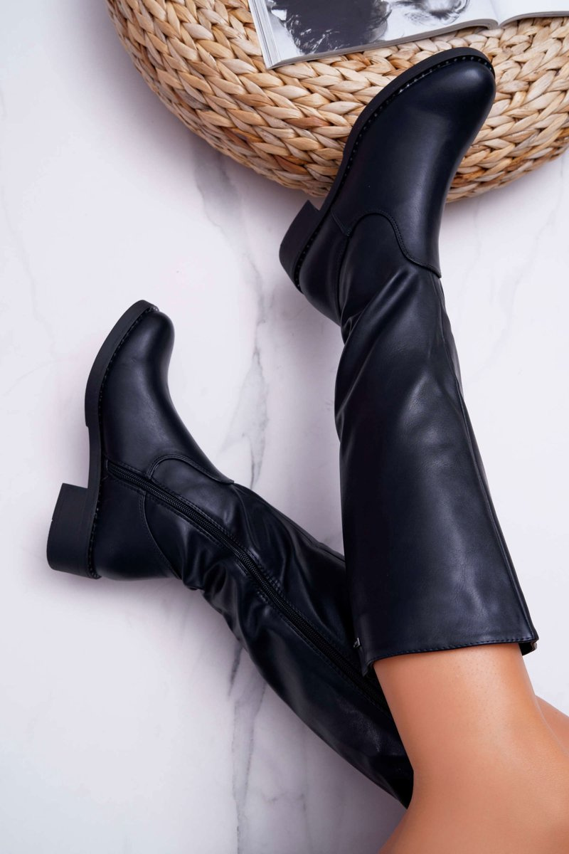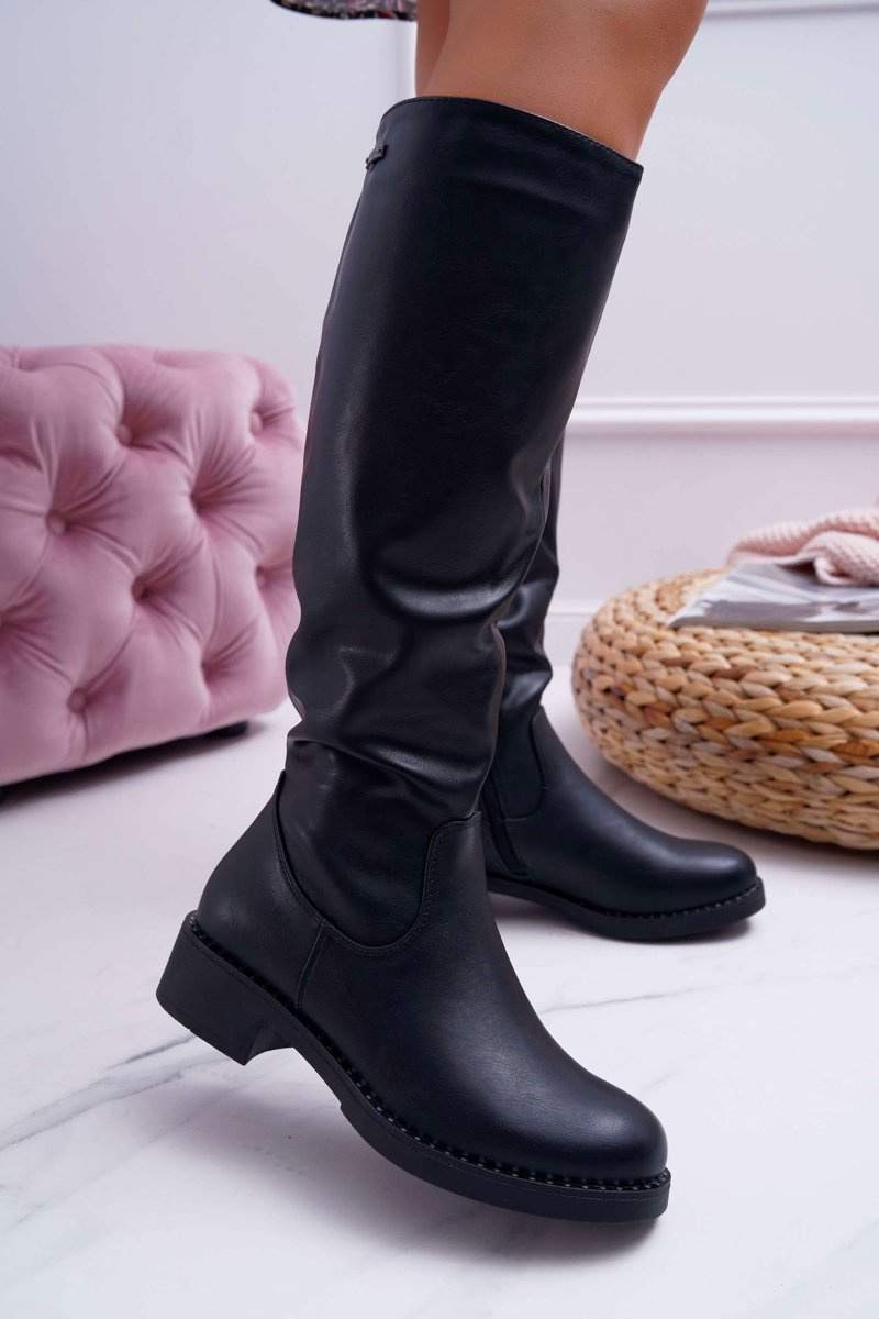 Damskie Kozaki Płaski Obcas Sergio Leone Ocieplane Czarne KZ280