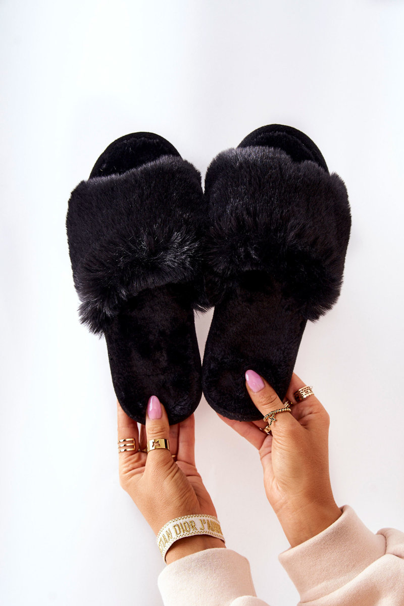 Papcie Damskie Z Futerkiem Czarne Trusted