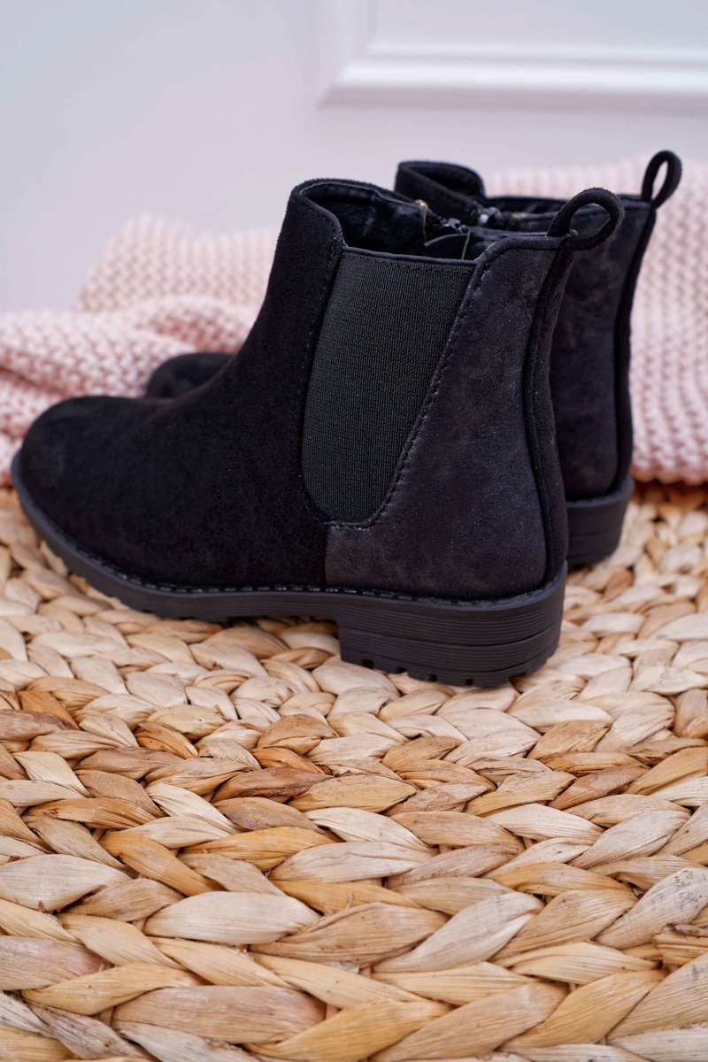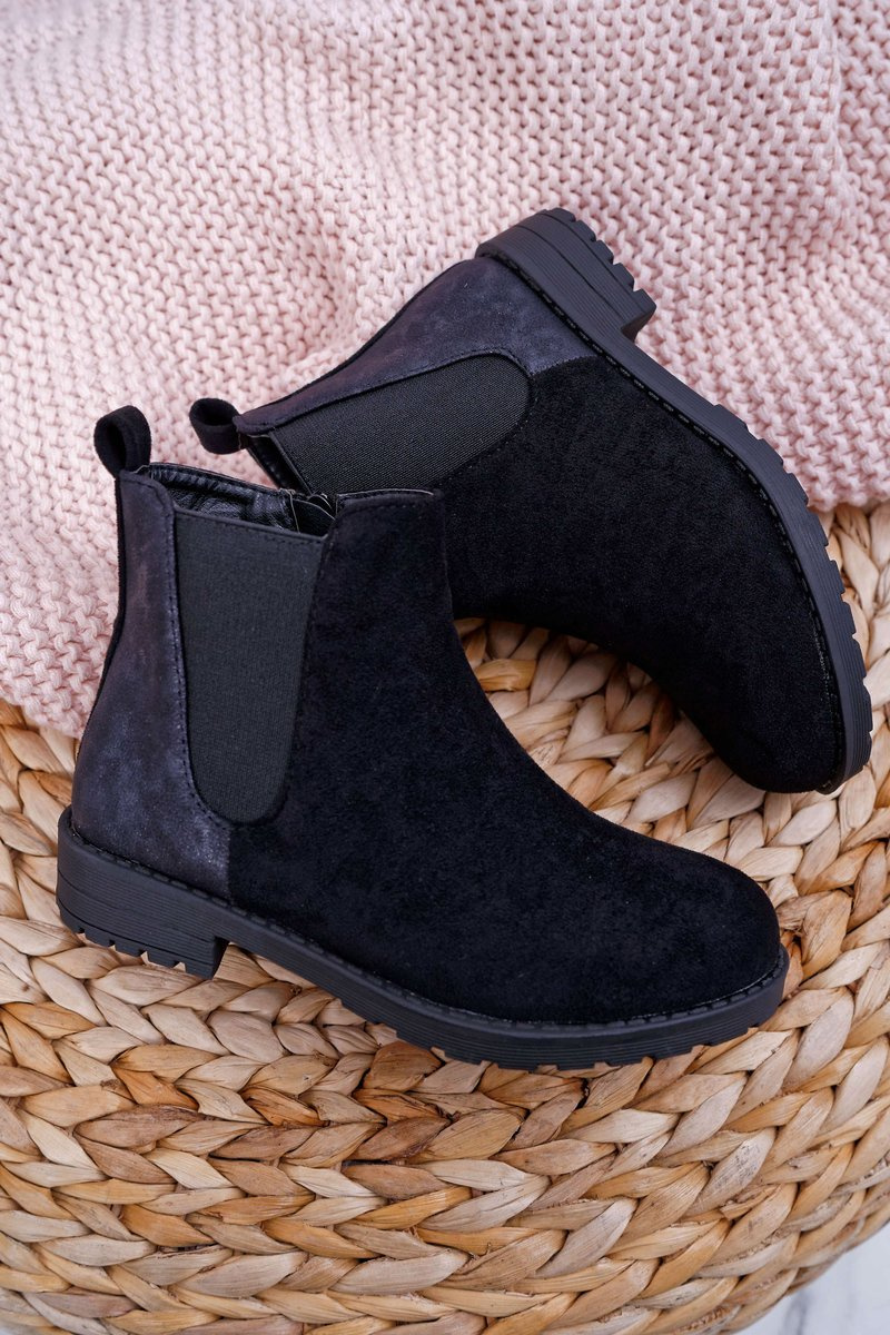 Młodzieżowe Botki z Płaski Obcas Czarne Mergolo