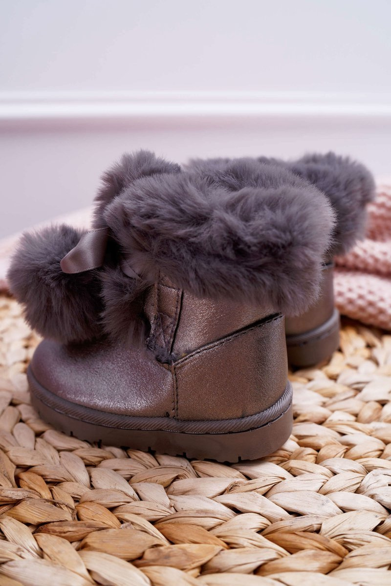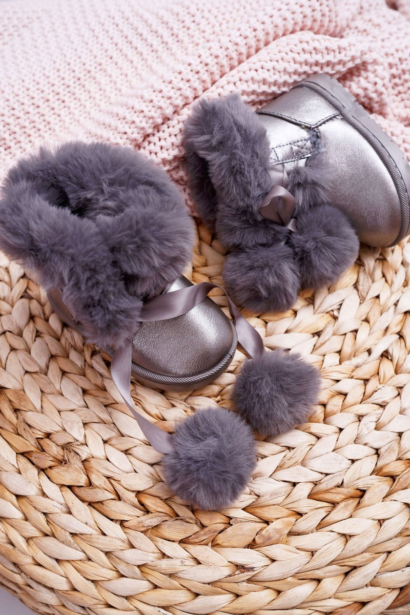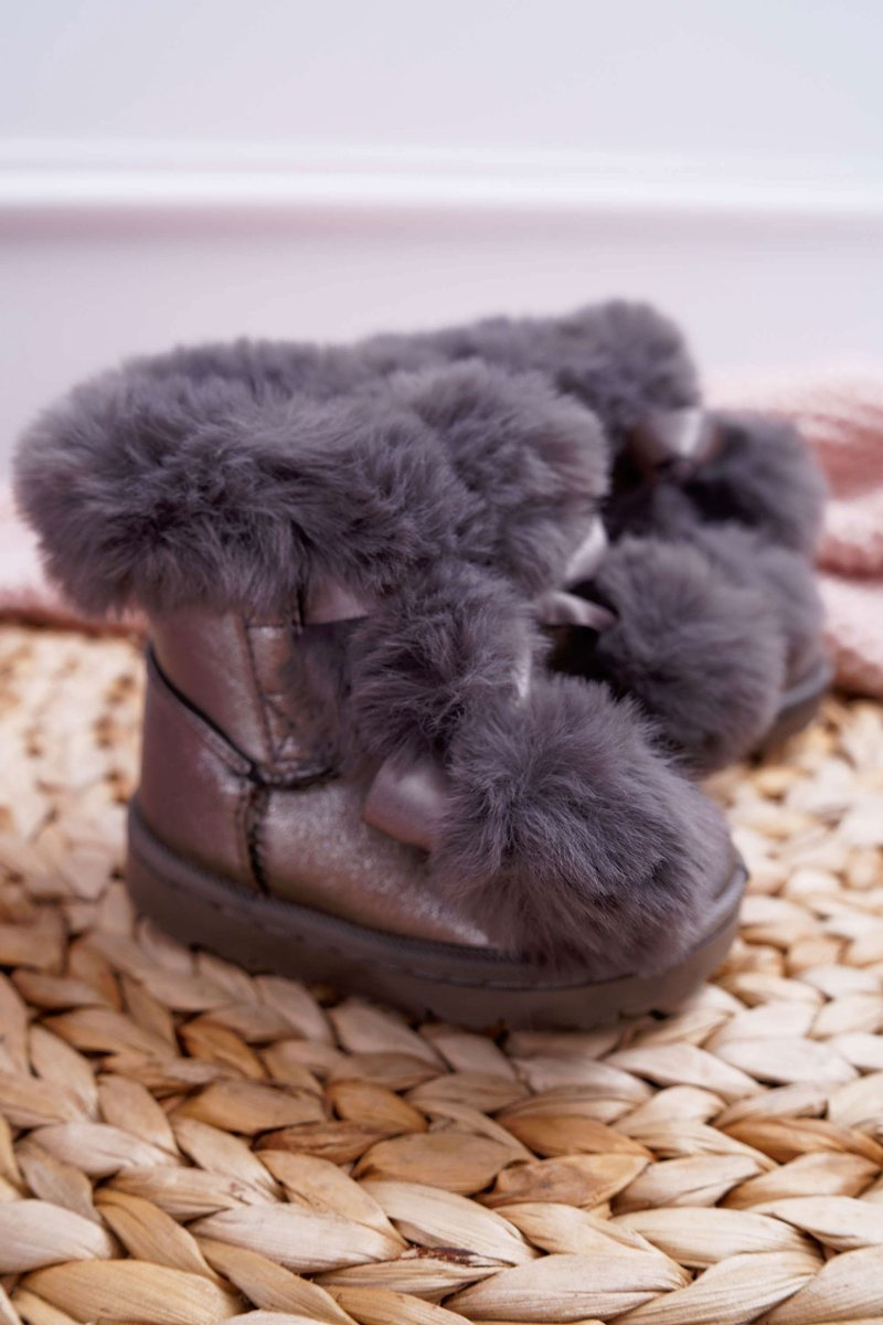 Dziecięce Botki Młodzieżowe Ocieplane Ciemnoszare Śniegowce Roofy
