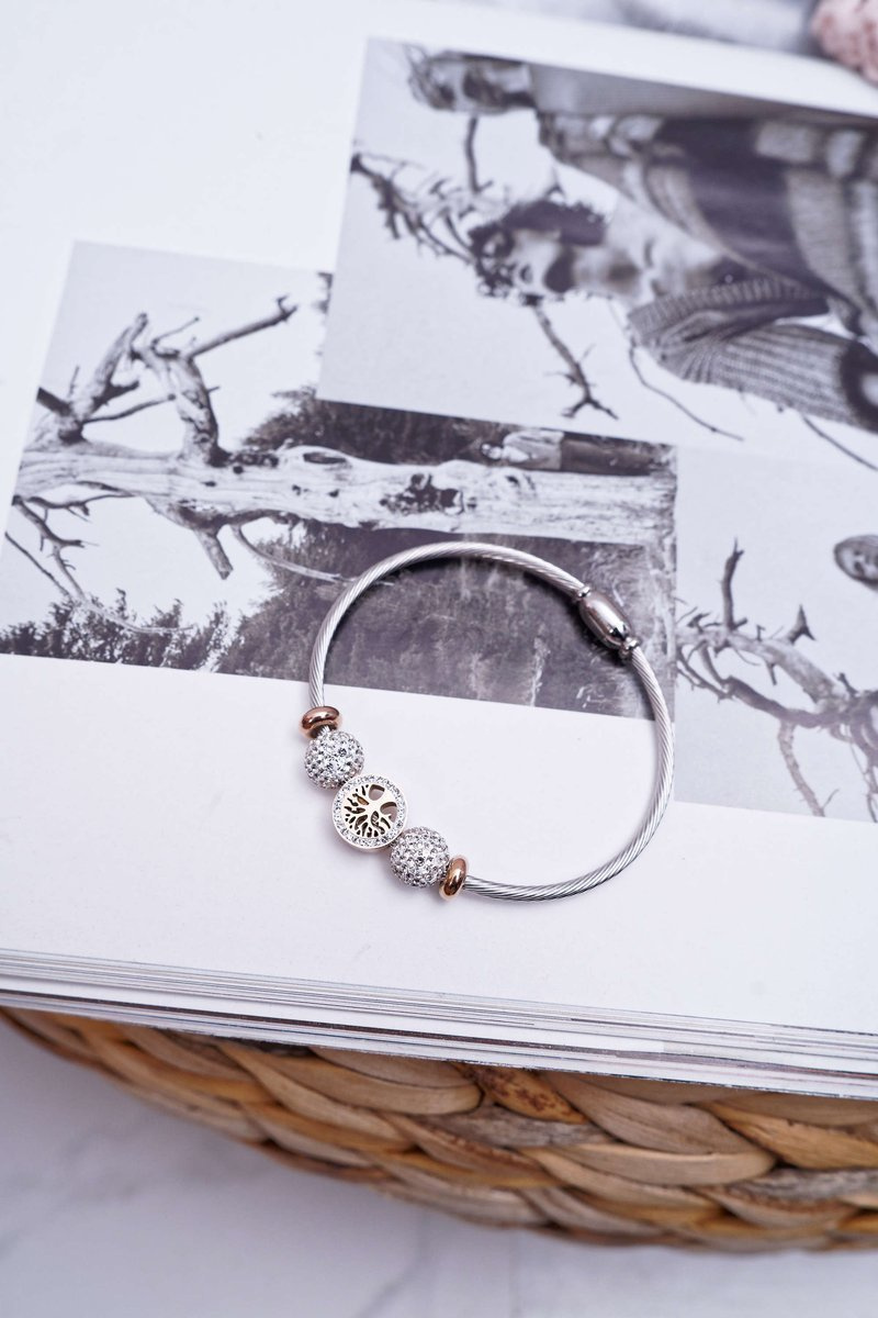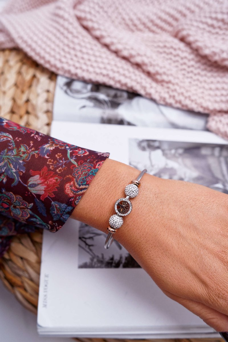 Damska Bransoleta Z Cyrkoniami Różowe Złoto Drzewo Życia Nemdar