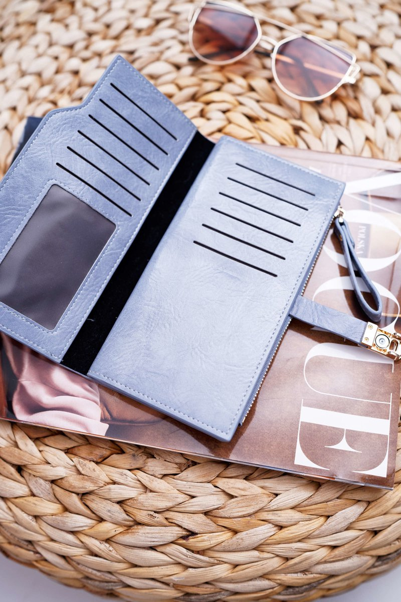 Elegancki damski portfel. Klasyczny wzór wykonany ze skóry ekologicznej. Portfel posiada dwie główne kieszenie z czego jedna zapinana jest na suwak a druga na magnes. Wewnątrz znajduje się miejsce na 22 karty bądź inne dokumenty oraz dwie kieszonki na fotografię. Druga komora idealnie sprawdzi się do przechowywania drobnych pieniędzy bądź telefonu.