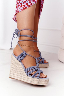 +2Wiązane Sandały Na Koturnie Z Plecionką Niebieskie Run The World