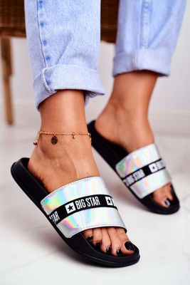 Klapki Damskie Big Star Srebrne Holo GG274A005