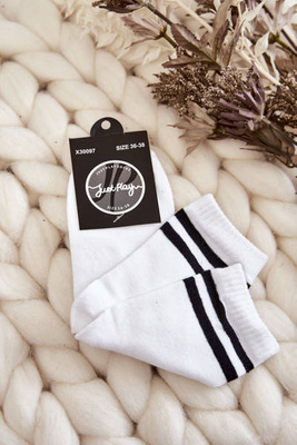Damskie Bawełniane Skarpety Sportowe Z Paskami Białe