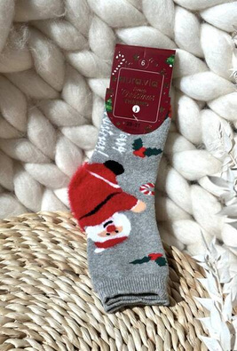 +5Dziecięce Świąteczne Bawełniane Skarpety Z Mikołajem Szare