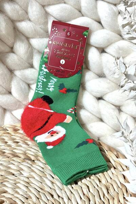 +5Dziecięce Świąteczne Bawełniane Skarpety Z Mikołajem Zielone