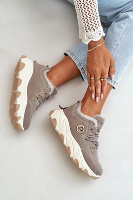 Ocieplane Buty Sportowe Damskie Sznurowane Na Platformie Szare Bialoa