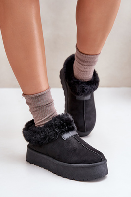 Śniegowce Z Niską Cholewką Z Futerkiem Na Platformie Eko Zamszowe Czarne Neathoria