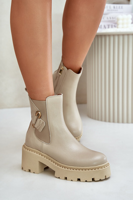 Zazoo 60490 Skórzane Ocieplane Botki Z Ozdobą Jasnobeżowe