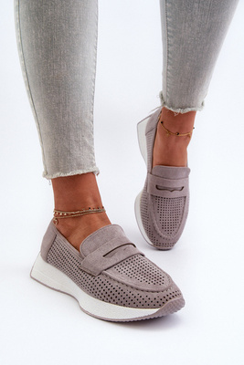 +4Mokasyny Damskie Na Platformie Eko Zamszowe Szare Inesqua