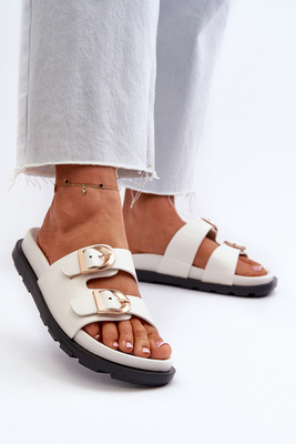 +1Klapki Damskie Eko Skórzane Z Klamrami Białe Valmira