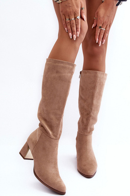 +1Kozaki Przed Kolano Zamszowe Na Obcasie Beżowe Inatris