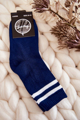 +4Młodzieżowe Bawełniane Skarpety Sportowe Z Paskami Granatowe
