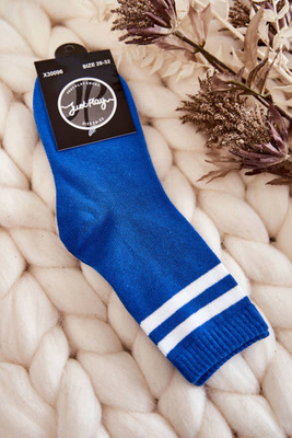 +4Młodzieżowe Bawełniane Skarpety Sportowe Z Paskami Niebieskie