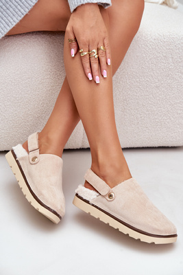 Kapcie Damskie Na Platformie Ocieplane Futerkiem Typu Baranek Beżowe Sanilora