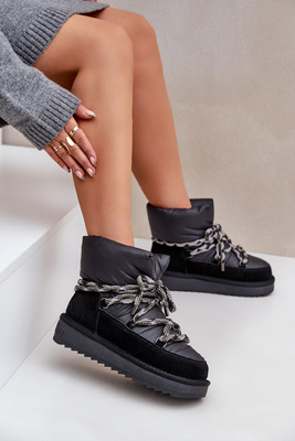 Zamszowe Śniegowce Damskie Z Grubym Sznurowaniem D.Franklin DFSH375003 Czarne
