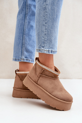 Śniegowce Na Platformie Z Ozdobnym Haftem Brązowe Heslania