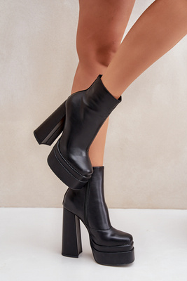 Botki Na Masywnej Platformie I Słupku Ocieplane Czarne Selahra