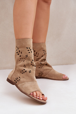 Zazoo 3437 Damskie Zamszowe Sandały Z Cholewką Na Zamek Beżowe