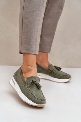 Mokasyny Na Delikatnym Koturnie Eko Zamszowe Zielone Challavia