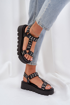 Zdobione Sandały Na Platformie Czarne Tatellia