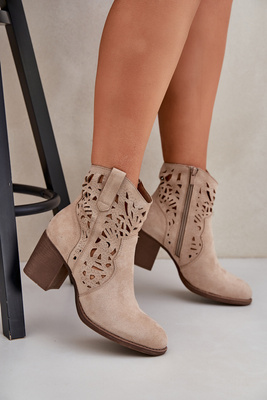 Ażurowe Botki Na Słupkowym Obcasie Beżowe Nurissa