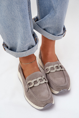 Zamszowe Mokasyny Na Platformie Z Łańcuchem D&A TW552 Szare