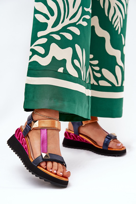 Skórzane Sandały Damskie Na Koturnie D&A CR51-135 Multikolor