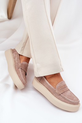 Mokasyny Damskie Zamszowe Na Platformie Vinceza 79535 Beżowe