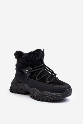 +1Damskie Botki Trapery Z Futerkiem Czarne Cresandi