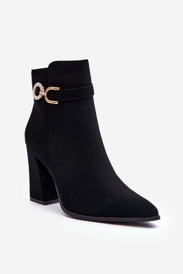 +2Zamszowe Botki Na Wysokim Słupku Czarne Liani