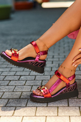 +1Sandały Damskie Skórzane Na Koturnie Maciejka 06657-25 Złote