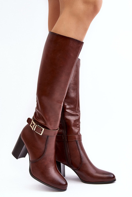 +1Kozaki Damskie Na Słupku Z Klamrą Ocieplane Brązowe Sendilia