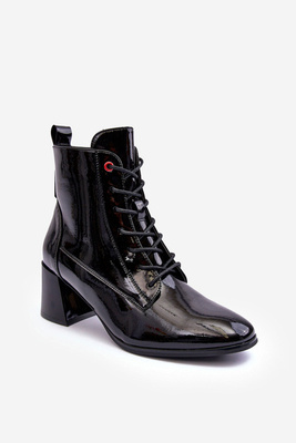 +2Lakierowane Sznurowane Botki Na Słupku S.Barski MR870-15 Czarne