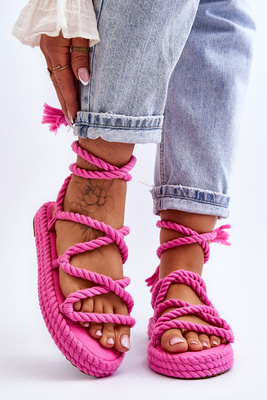 +4Wiązane Sandałki Na Masywnej Platformie Różowe Can't Wait