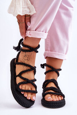 +4Wiązane Sandałki Na Masywnej Platformie Czarne Can't Wait