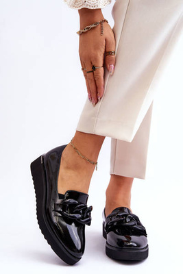 Lakierowane Damskie Mokasyny Czarne Sanvi