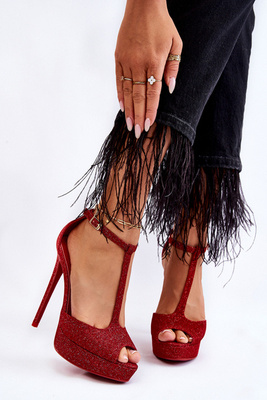 Modne Skórzane Sandały Na Wysokim Słupku Czarne Perfection