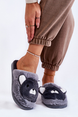 Damskie Futrzane Papcie Z Misiem Szare Solly